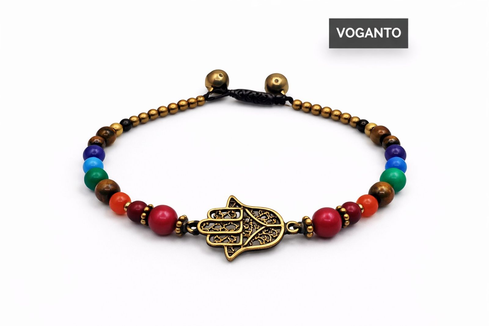 Bracciale 7 chakra in ottone con pietre naturali e simbolo della mano di Fatima, un articolo indispensabile per arricchire l’assortimento del proprio negozio e non perdere opportunità di vendita. Il design regolabile lo rende adatto a tutti i clienti, mentre la presenza delle pietre dei 7 chakra lo rende immediatamente riconoscibile e molto richiesto nel settore olistico.