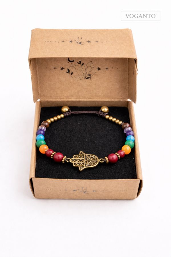 Bracciale in ottone 7 chakra con mano di Fatima cm 20 con scatola