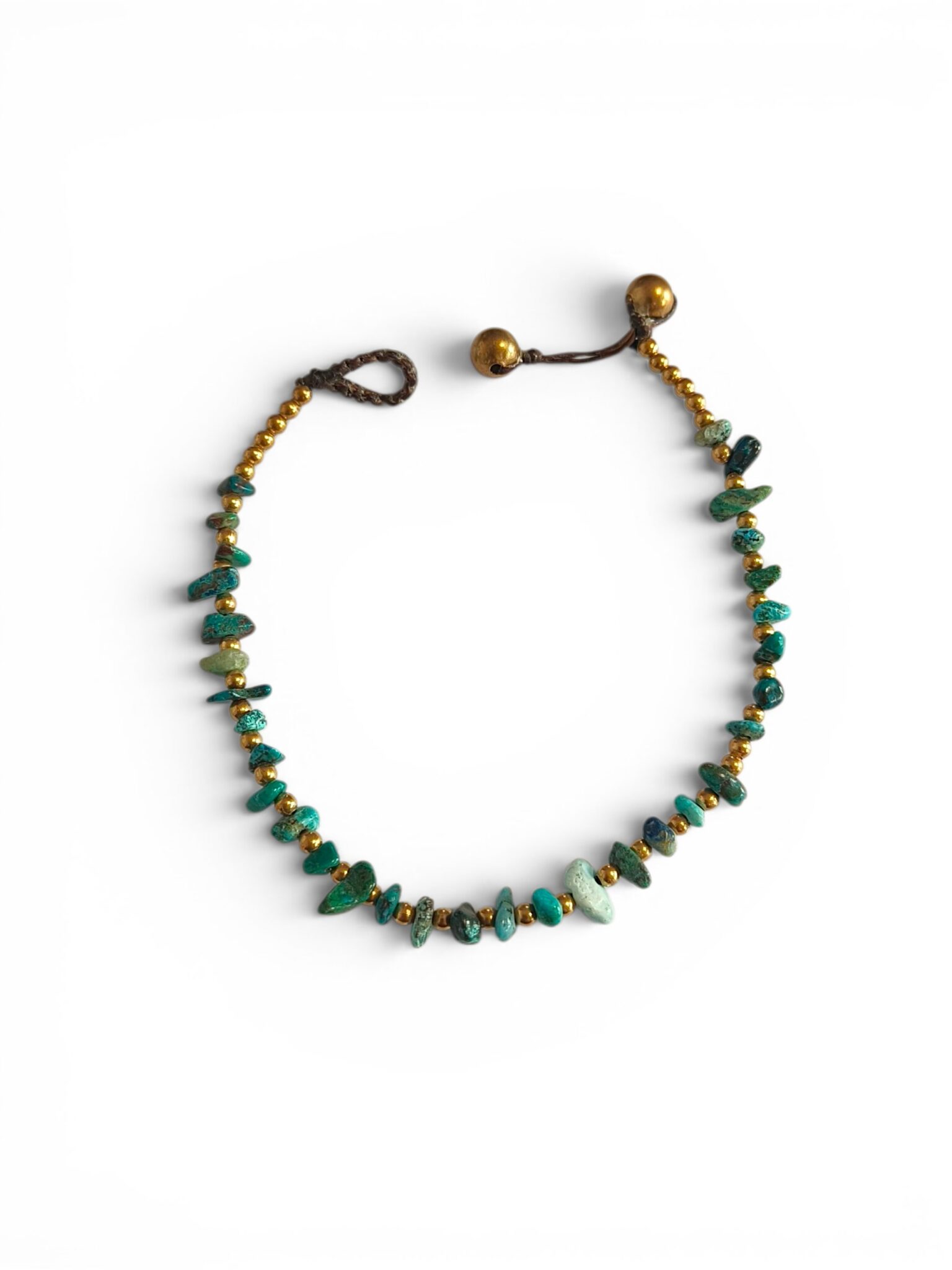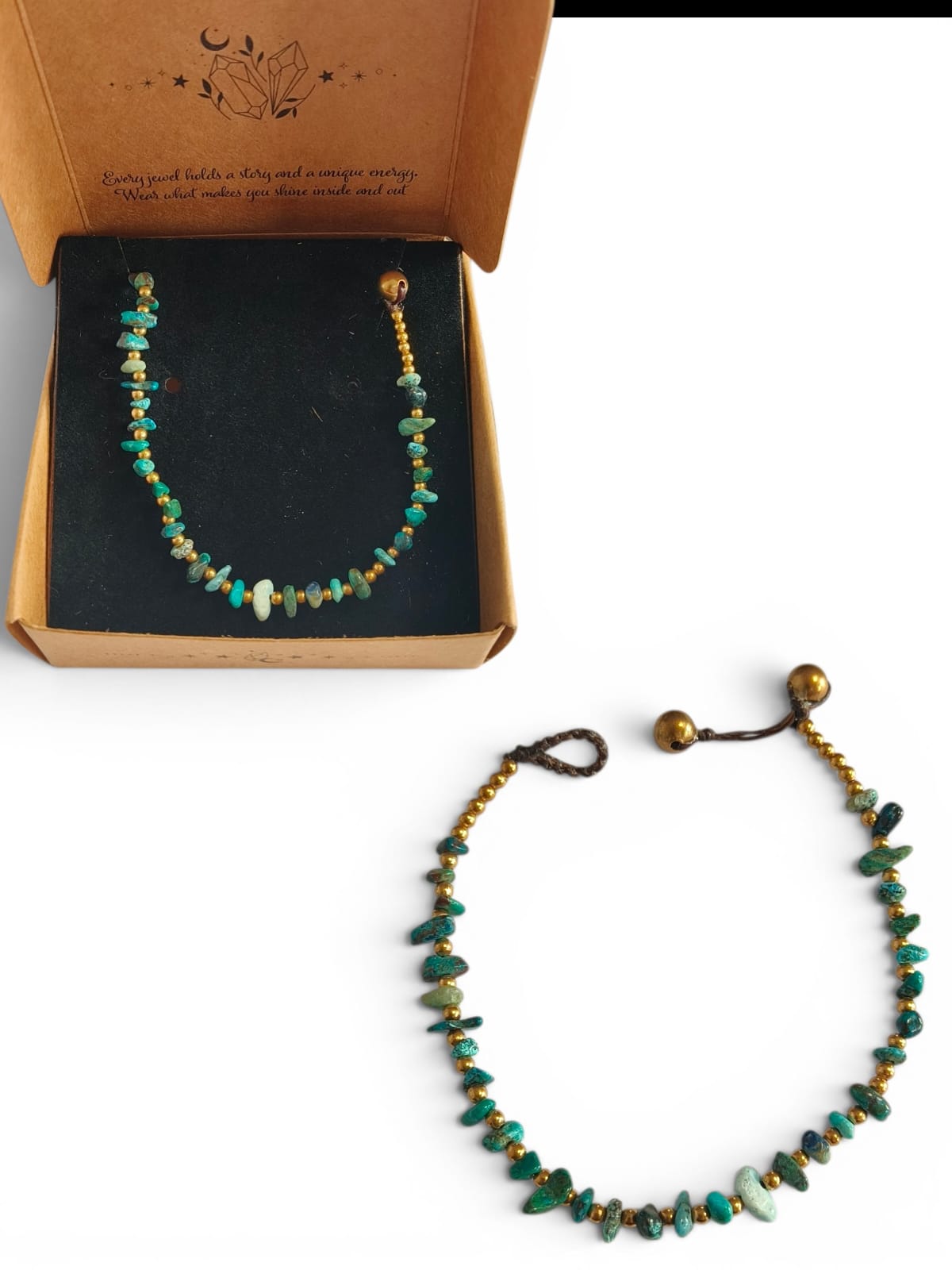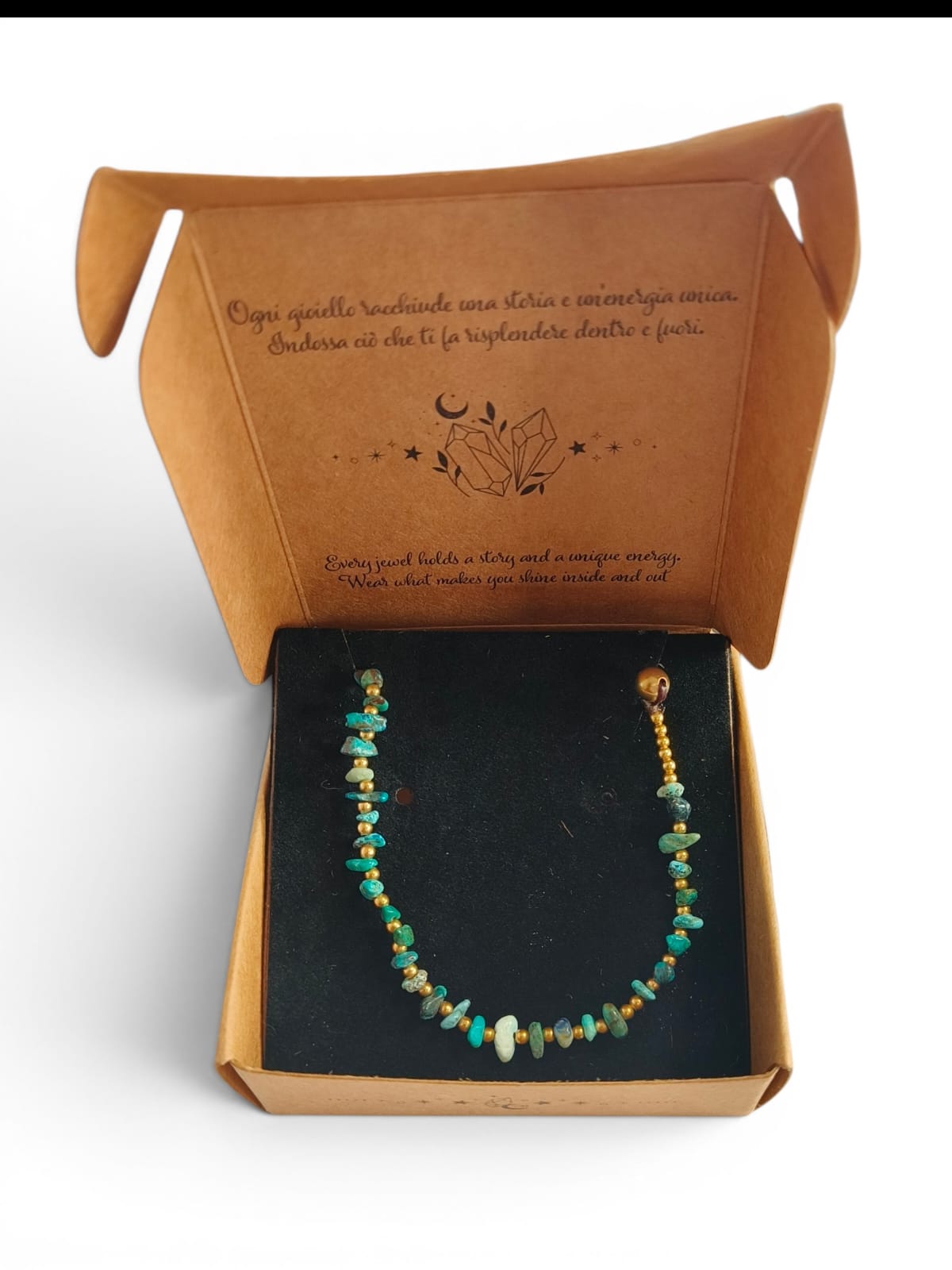 Bracciale in ottone chips di Crisocolla cm 20 con scatola inclusa