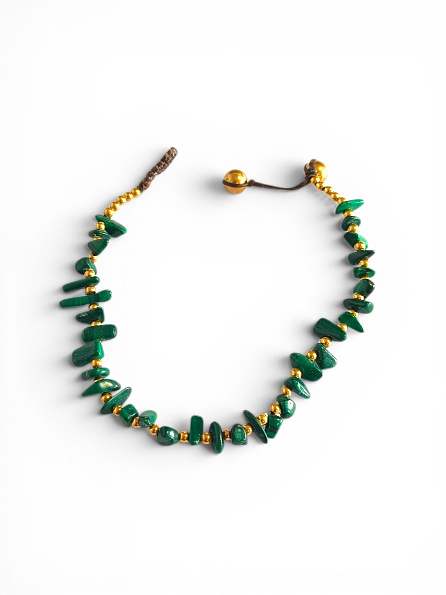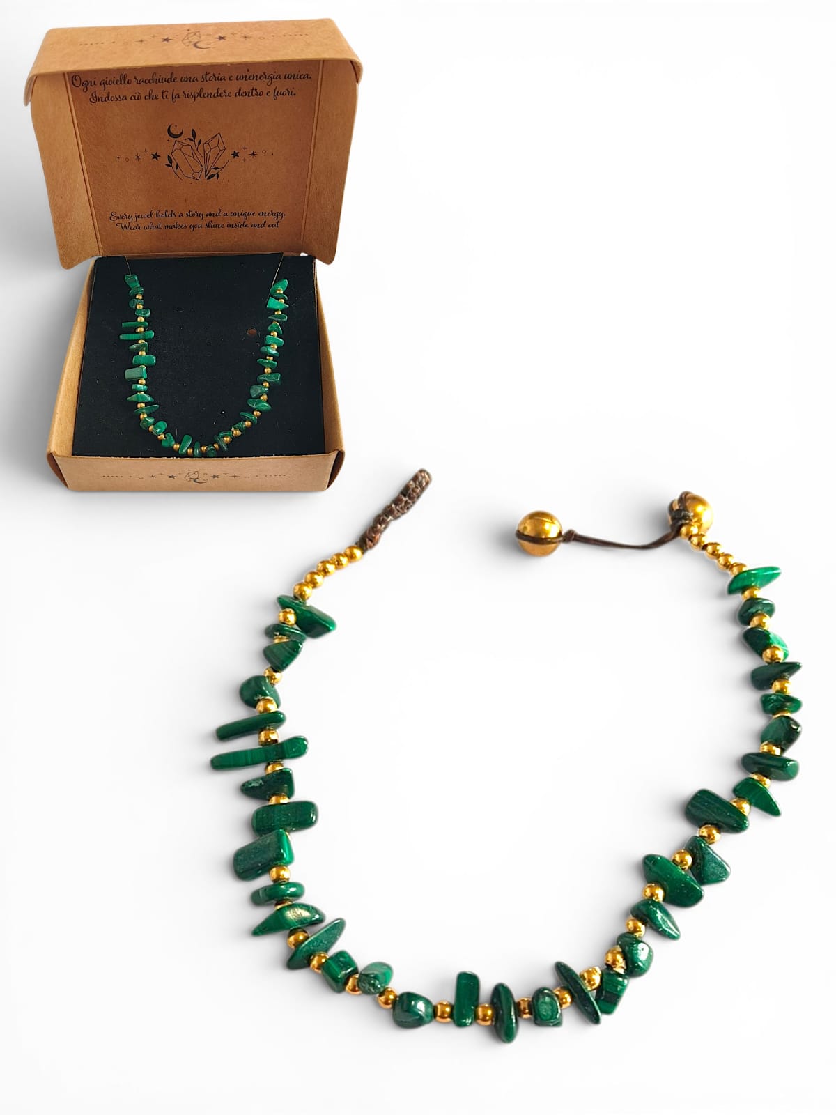 Bracciale in ottone chips in Malachite cm 20 con scatola inclusa