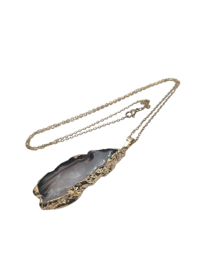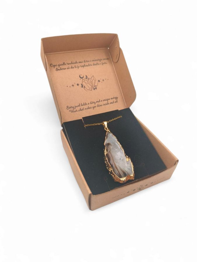 Ciondolo agata grezza naturale cm 5 circa con catenina in acciaio e scatola