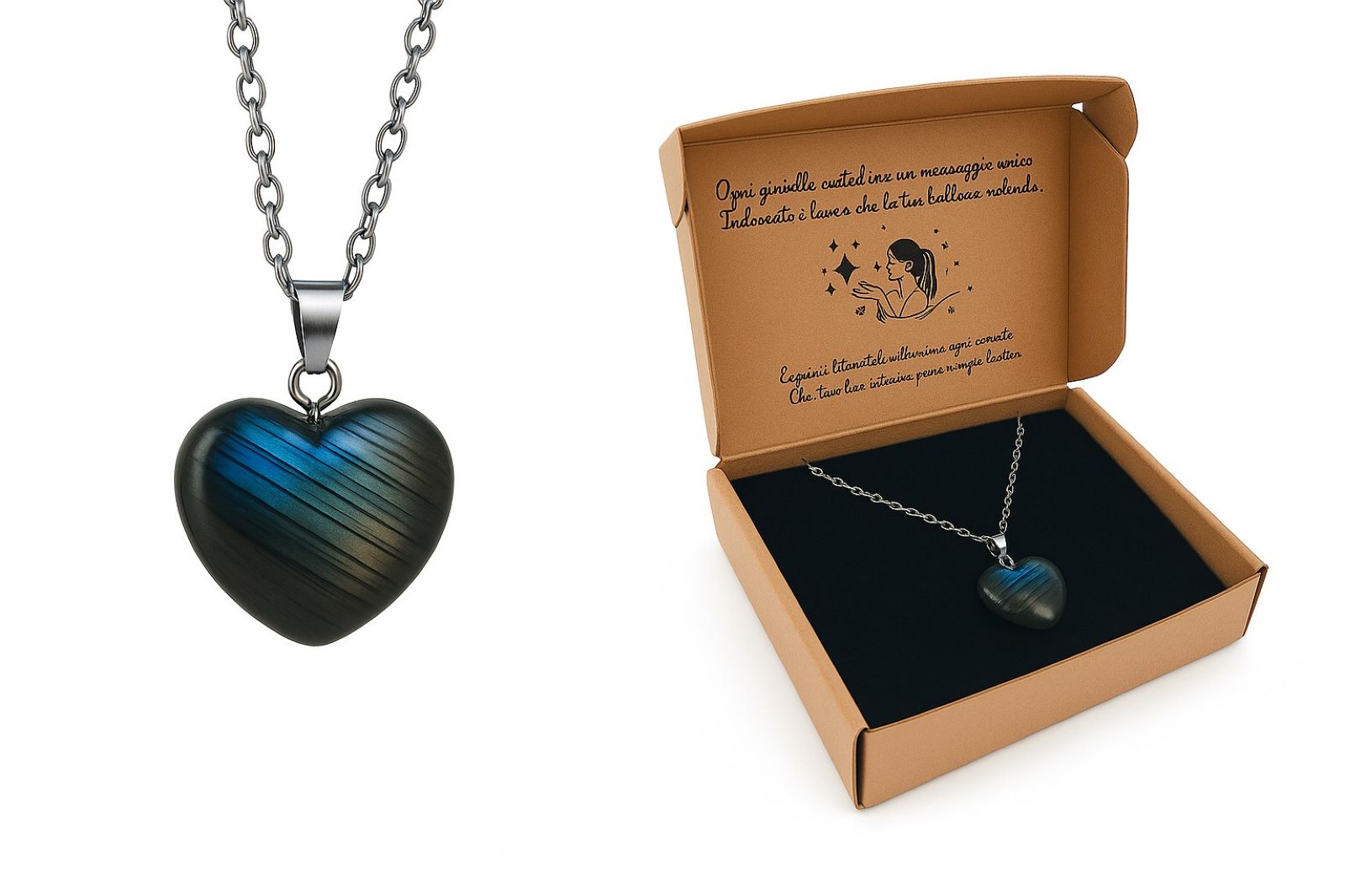 Ciondolo cuore labradorite cm 3 con catenina e scatola