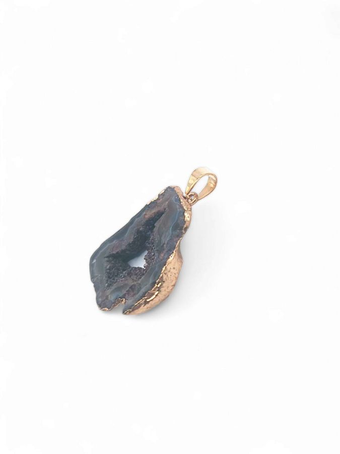 In questa versione, il bordo della pietra è rifinito con una galvanizzazione dorata, una lavorazione che ne esalta la forma e la luce senza alterarne l’energia. Il dorato non è solo estetica: incornicia la forza dell’agata e la rende un gioiello prezioso, pronto per essere indossato o regalato.