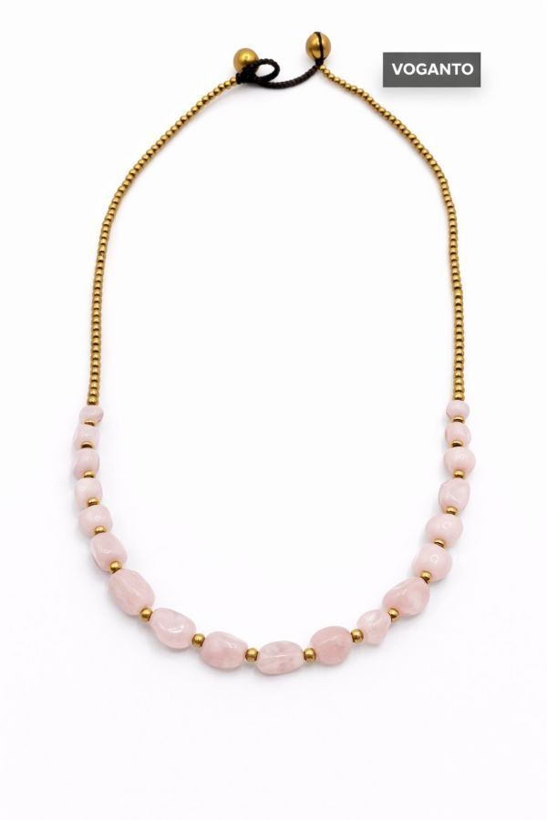 Collana in ottone e quarzo rosa cm 45