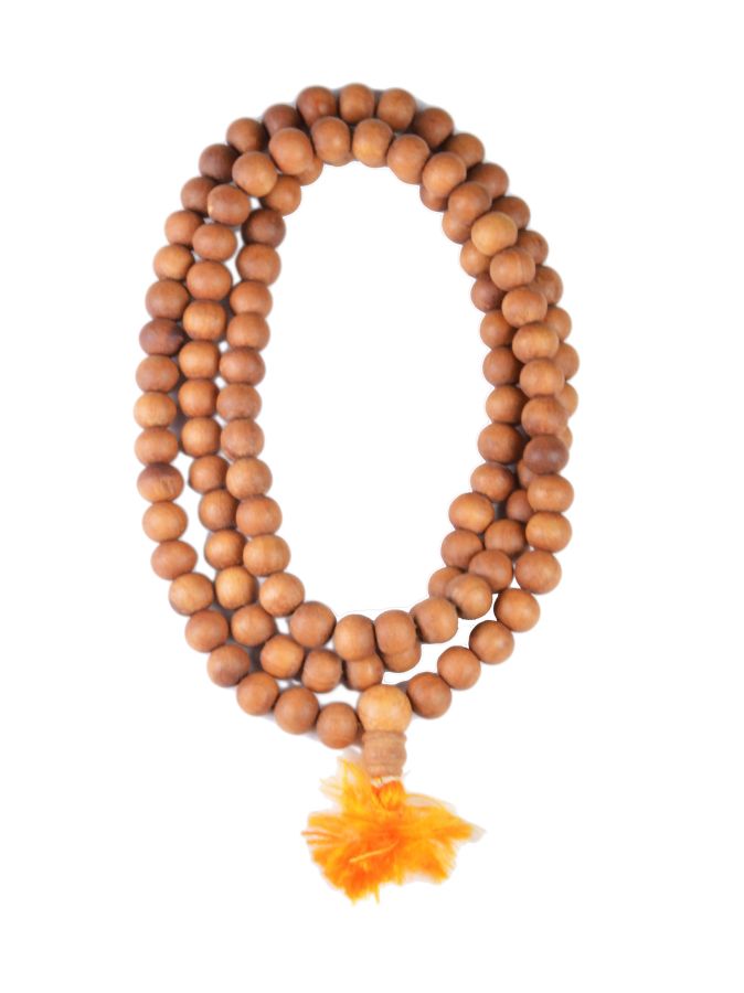 Uso meditativo: Il mala in sandalo con 108 grani viene utilizzato per recitare mantra, pregare o meditare. Ogni grano corrisponde a una ripetizione, aiutando a mantenere la mente focalizzata.