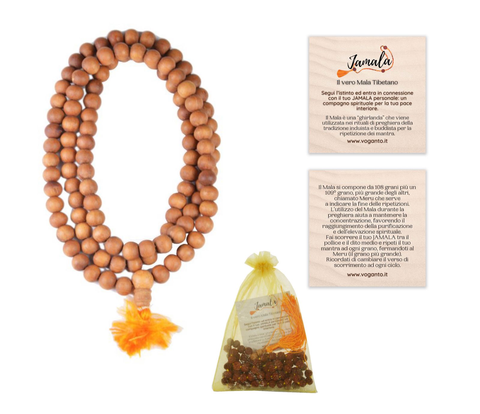 Collana mala tibetano Sandalo108 grani da 8 mm con confezione e cartellino Jamala
